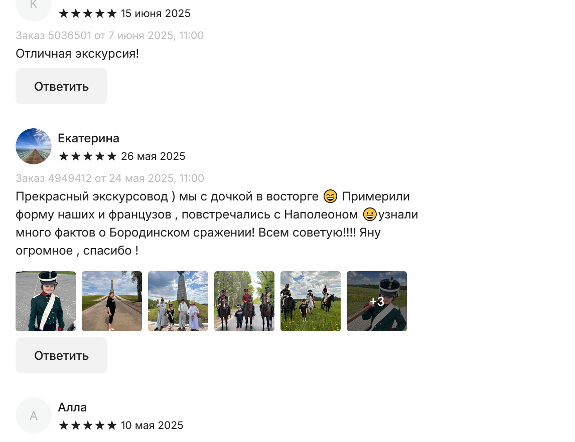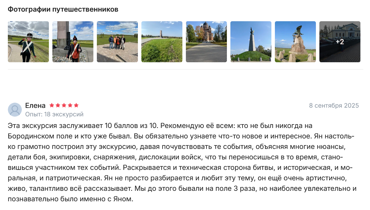 Спасибо всем, кто посещает мои экскурсии на Бородинском поле и оставляет ОТЗЫВЫ